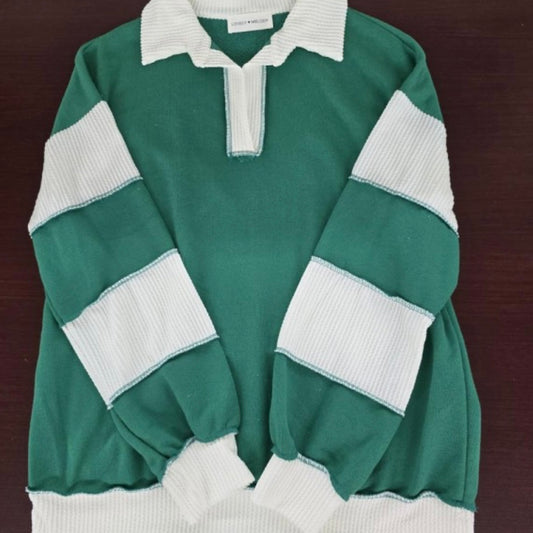Kelly Green Curved Hem Two-tone Sweater