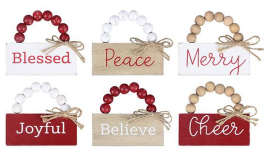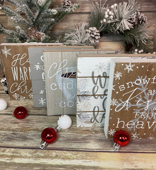 Wood Christmas Mini Signs W/Blessing Banner