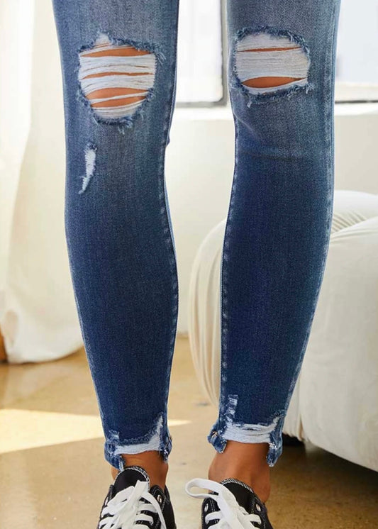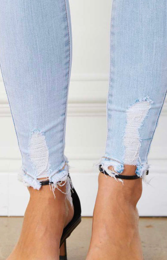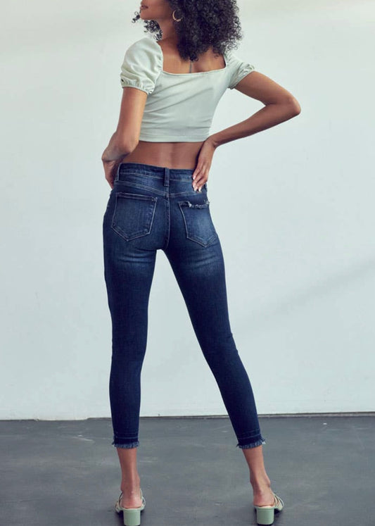 KanCan Mid Rise Raw Edge Ankle Skinny Jeans