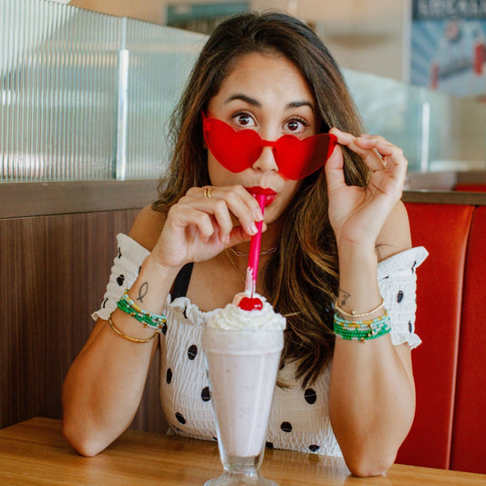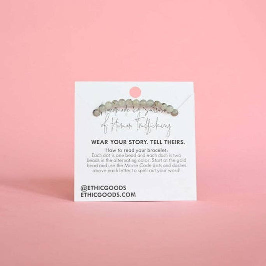 MINI Morse Code Bracelet | GRANDDAUGHTER: Watermelon Jasper & Cloudy Glass