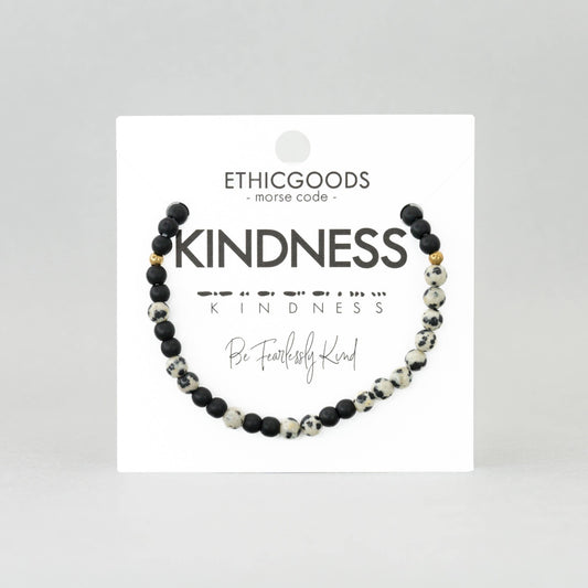 Morse Code Bracelet | KINDNESS: Matte Black Onyx & Dalmatian Jasper