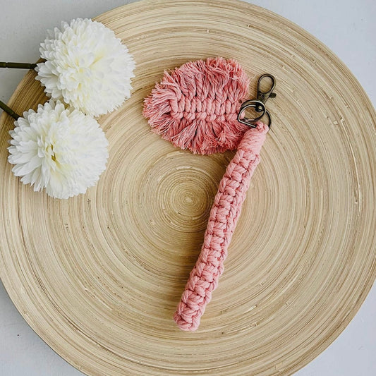 Boho Macrame Keychain - Leaf Tassel - Pink