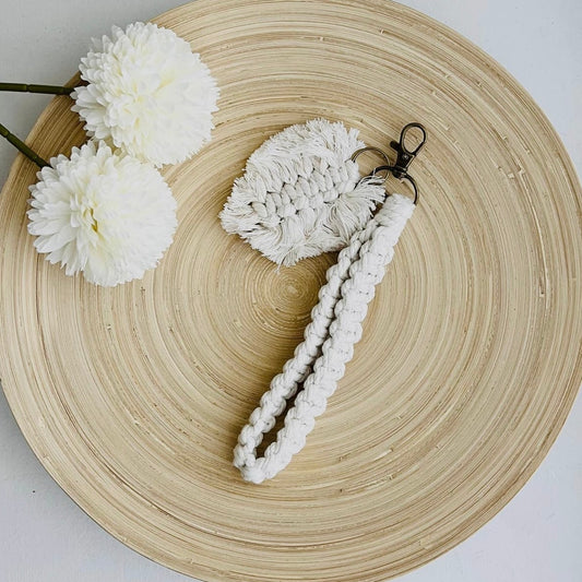 Boho Macrame Keychain - Leaf Tassel - Natural