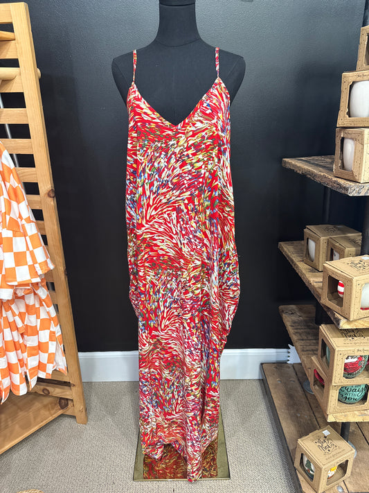 Red Floral Midi Dress