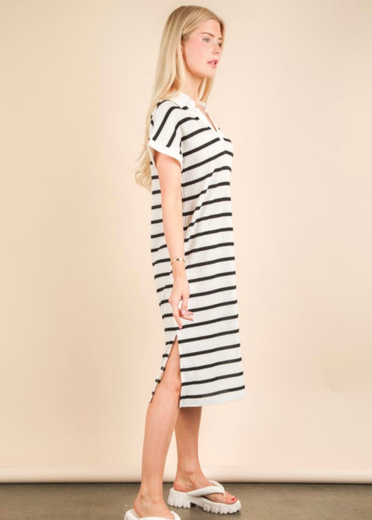 Oversized Black Striped Midi Dress