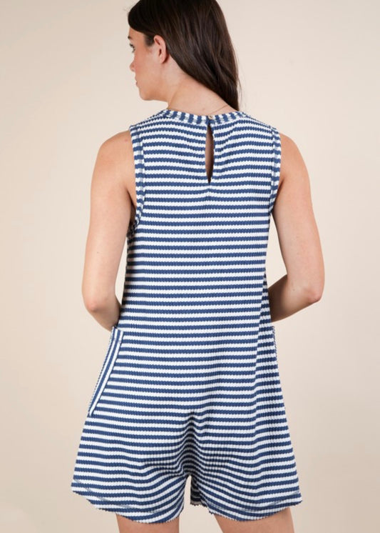 Denim Striped Knit Romper