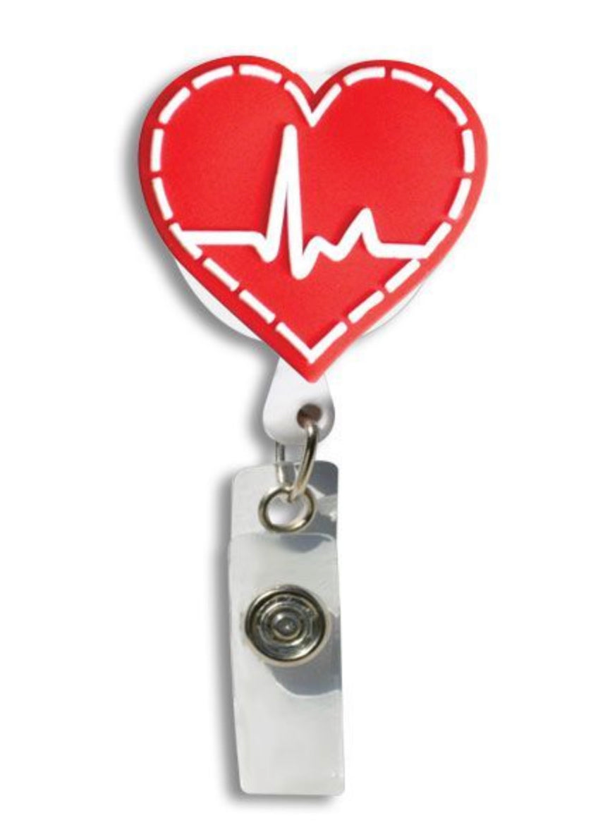 3D Rubber Retractable Badge Reel - EKG Heart