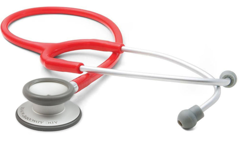 Weighing just 3.7 oz, the all new ADC Adscope 619 is a durable yet lightweight instrument with the acoustic performance you would expect from a scope costing two or three times more. The combination chestpiece precisely machined from lightweight aluminum, offers both an ultra-sensitive diaphragm for crisper high frequency transmission and an extra-deep bell for unsurpassed low frequency response. Our AFD technology diaphragm further enhances acoustic response, with an extra-large 1 3/8" diameter bell and highly sensitive 1 3/4" diaphragm. The clinician headset, designed to withstand thousands of cycles, features a double-leaf tensioning a spring and a reinforcing yoke molded into 22-inch PVC tubing. Includes both large and small Adsoft Plus eartips and scope ID tag. Individually acoustic tested and inspected in the USA. Lifetime warranty and free parts forever.