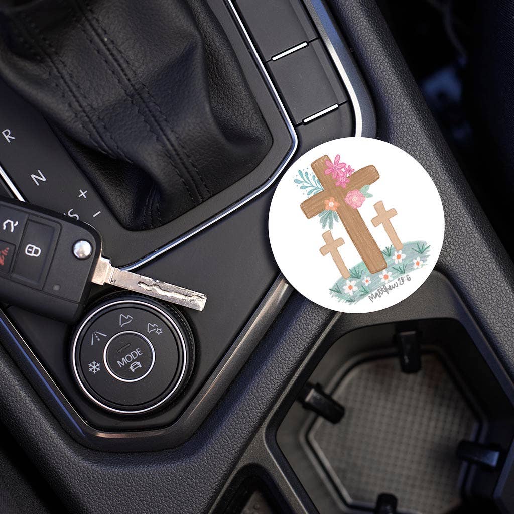 If you don’t know about car coasters yet…they’re a big deal. Like hair in the 80’s. You might ask yourself, “where have these been all my life?” Car coasters fit snuggly into your vehicle’s cup holders. Strategic divot on one side so they can be easily popped out. Pretty & practical – a pop of design and they keep your cup holders clean. 2.65” diameter. Absorbent ceramic coaster. Designed, printed and packaged in the USA