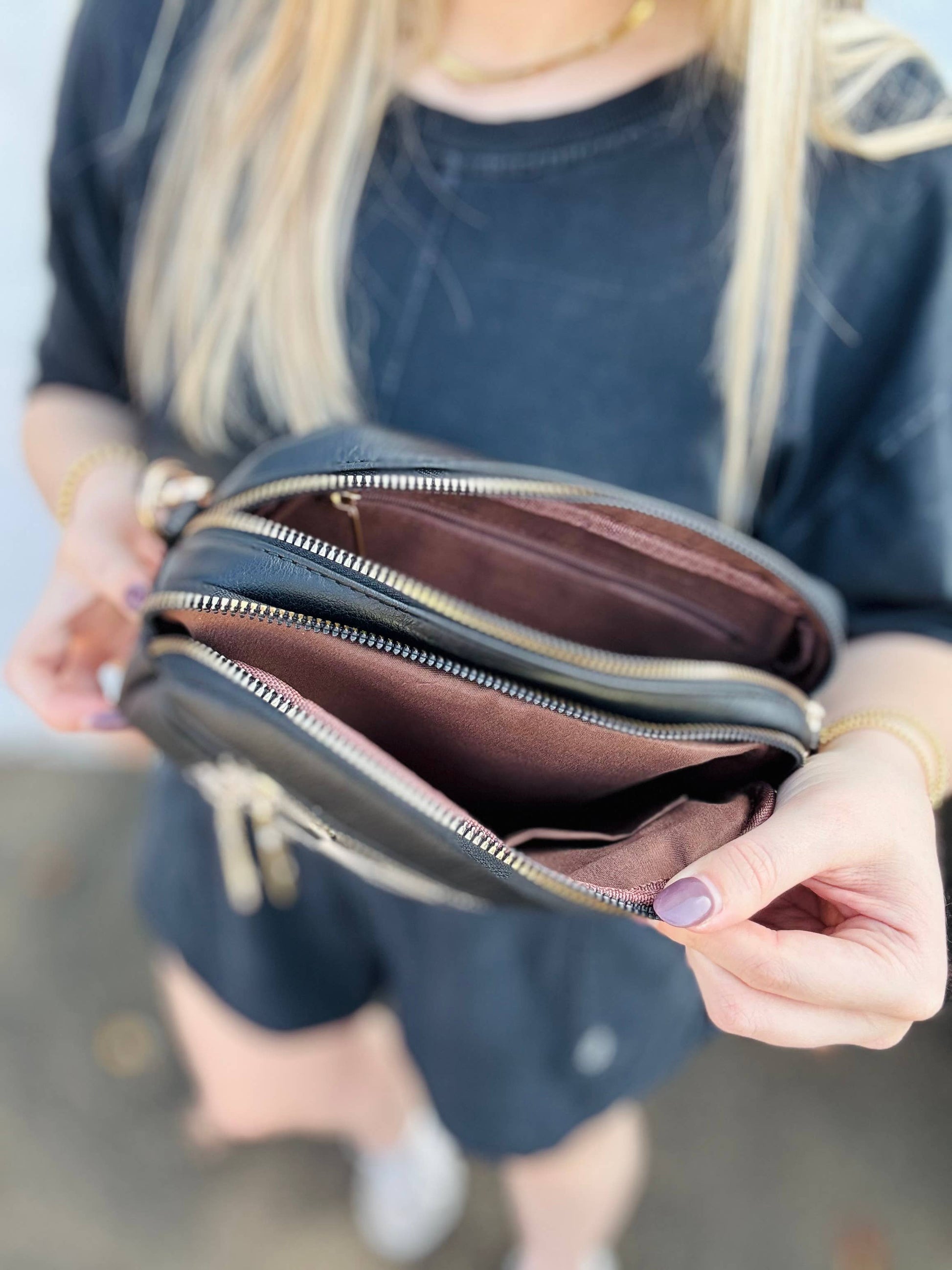 Double Front Zip Pockets Adjustable Crossbody Strap Trendy Checkered Pattern 9 x 2.5 x 7