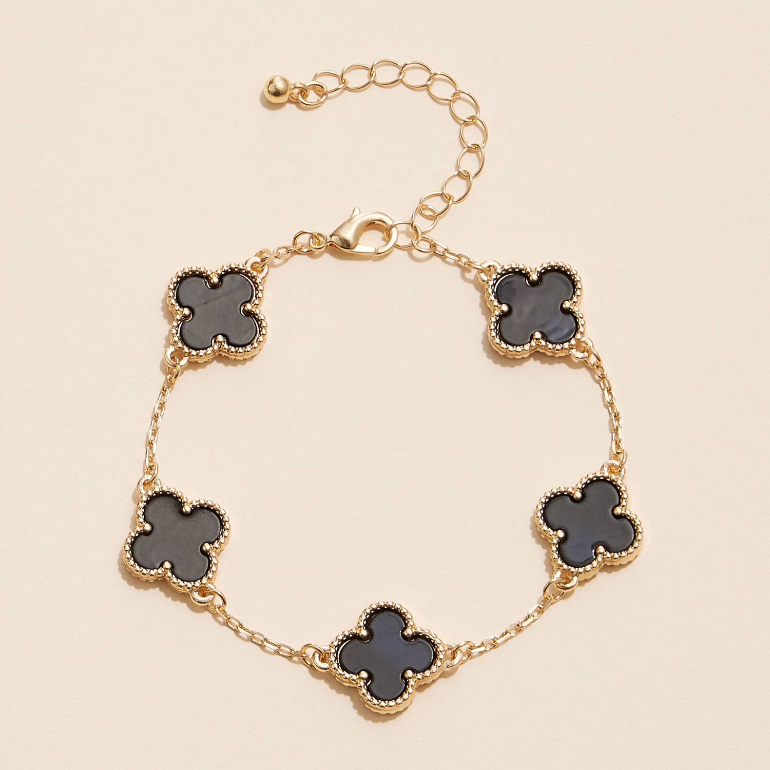This Clover Charms Basic Bracelet is a beautiful and durable accessory for any outfit. Each charm features a unique clover design, making it a stylish addition to any jewelry collection. Perfect for everyday wear or special occasions, this bracelet is a must-have for any fashion-forward individual.