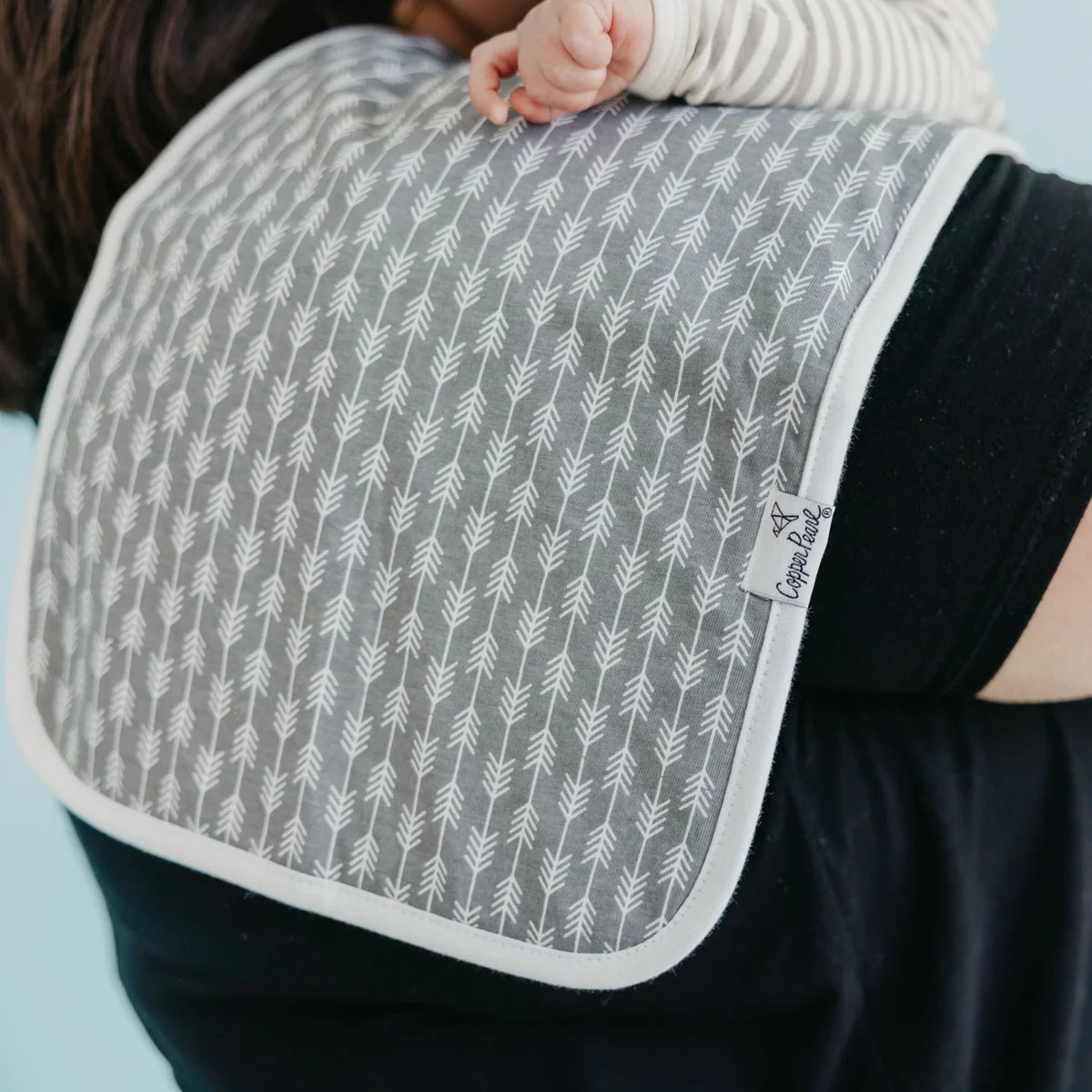 Our burp cloths come in a generous 21x10 inch size, providing greater shoulder coverage (and less outfit changes) for Mom and Dad.