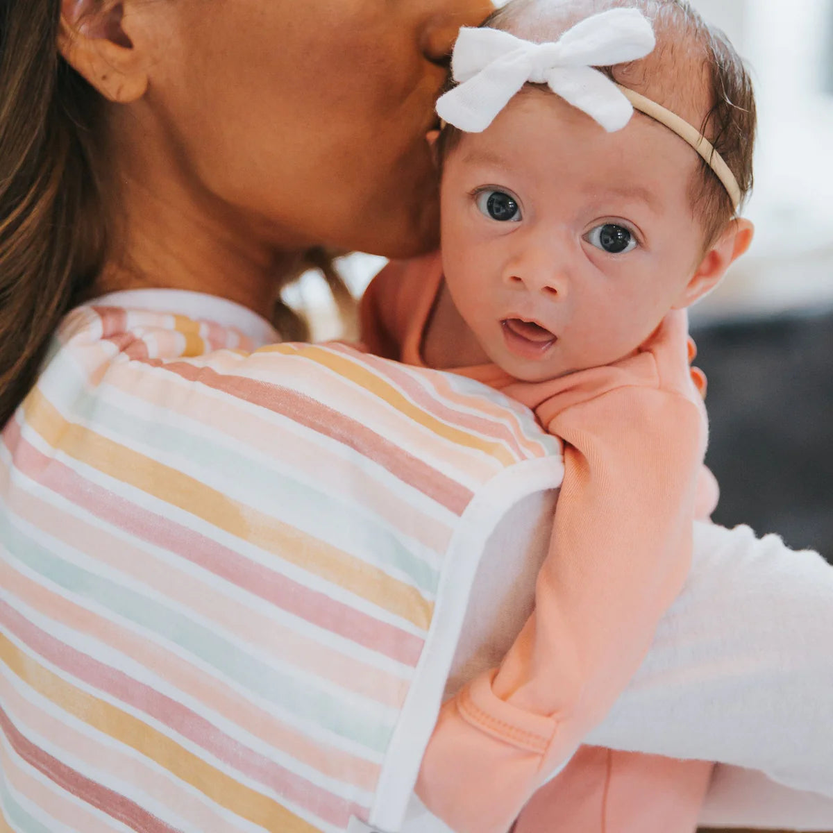 Our burp cloths come in a generous 21x10 inch size, providing greater shoulder coverage (and less outfit changes) for Mom and Dad.