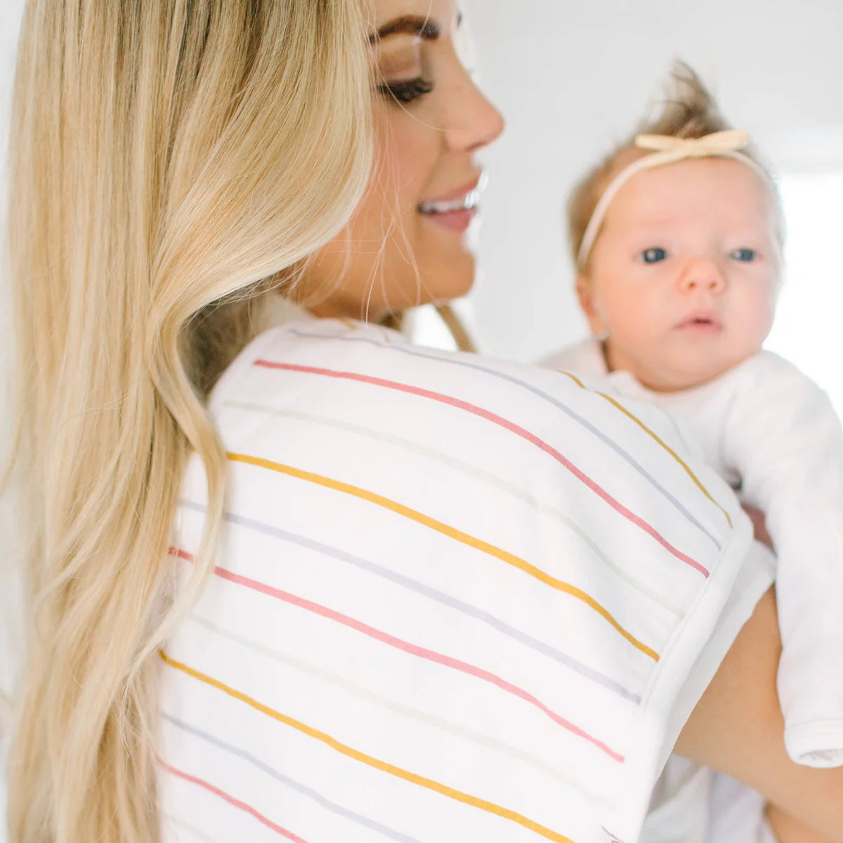 Our burp cloths come in a generous 21x10 inch size, providing greater shoulder coverage (and less outfit changes) for Mom and Dad.