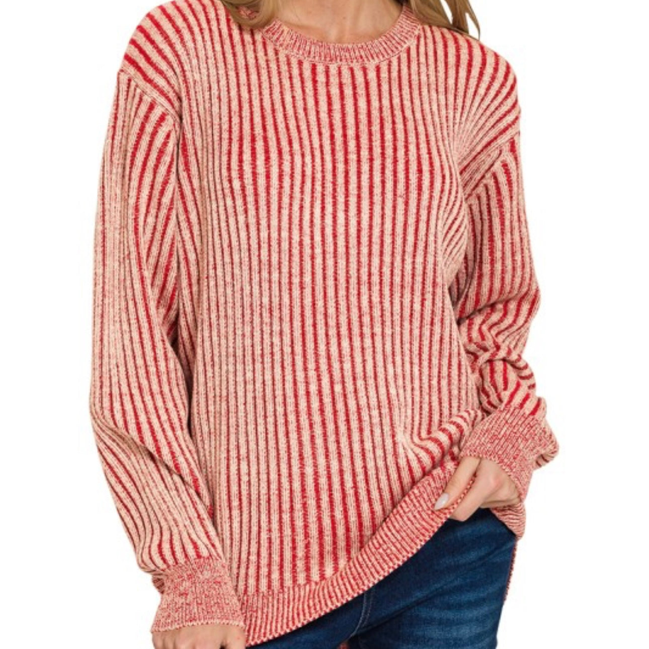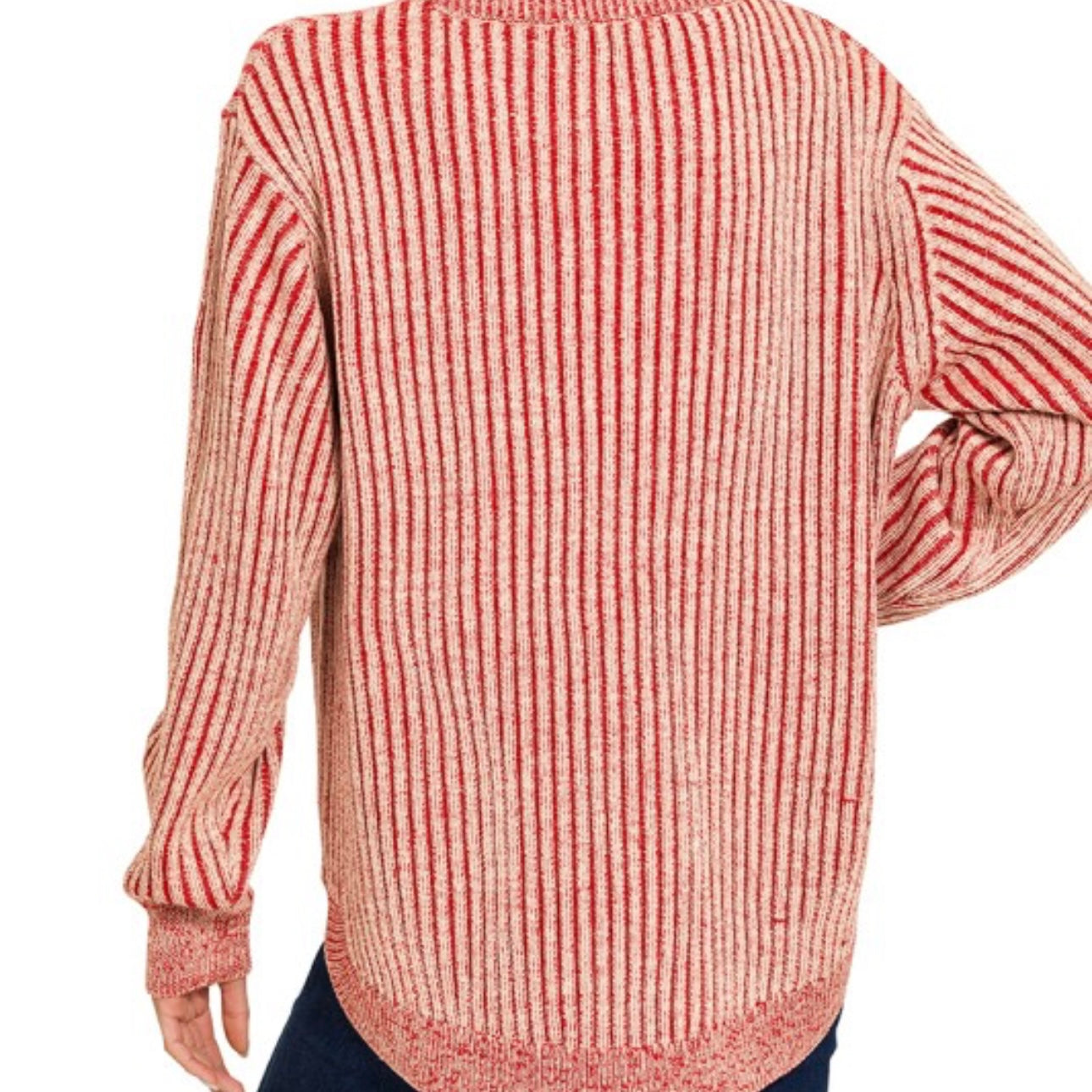 Dark Red Curved Hem Two-tone Sweater