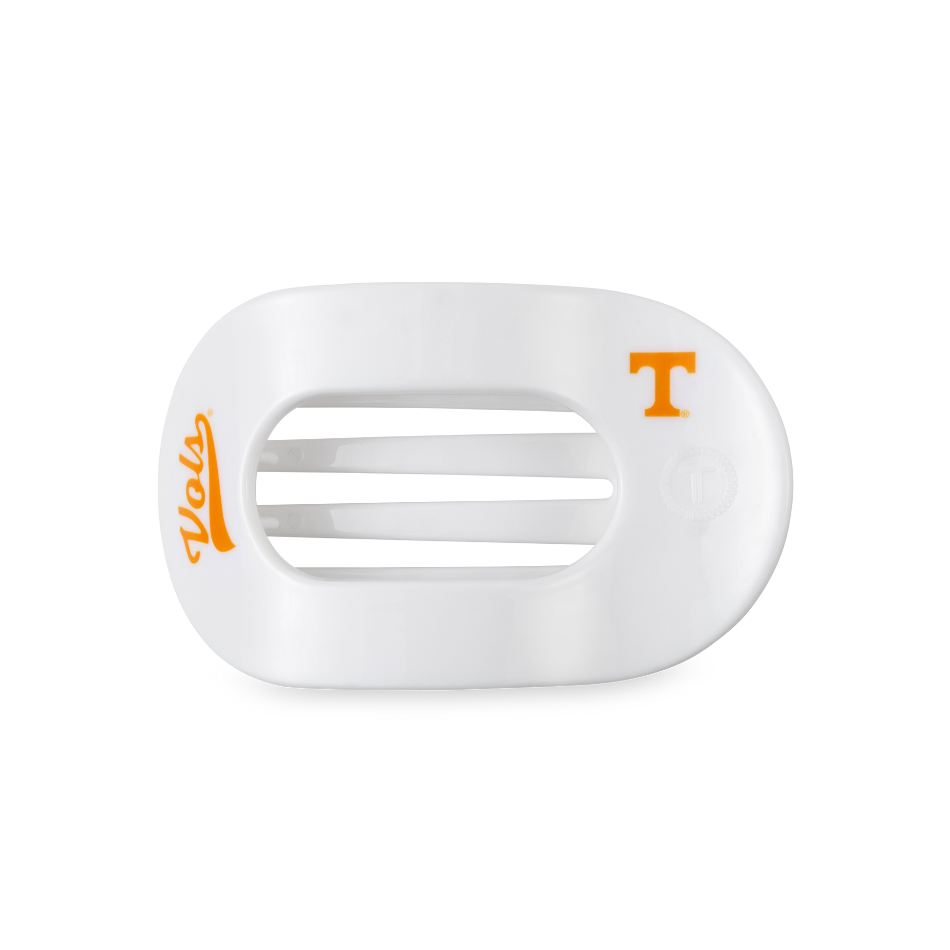 Lay flat and relax with the new TELETIES University of Tennessee, Go Vols! Medium Flat Round Hair Clip in White and Orange. This hair clip is designed to allow you to lay back flat, do yoga, or sit comfortably in a seat with a headrest, and it is made with the same material that is nearly unbreakable. Shop your favorite University of Tennessee hair accessories now! Go Vols!