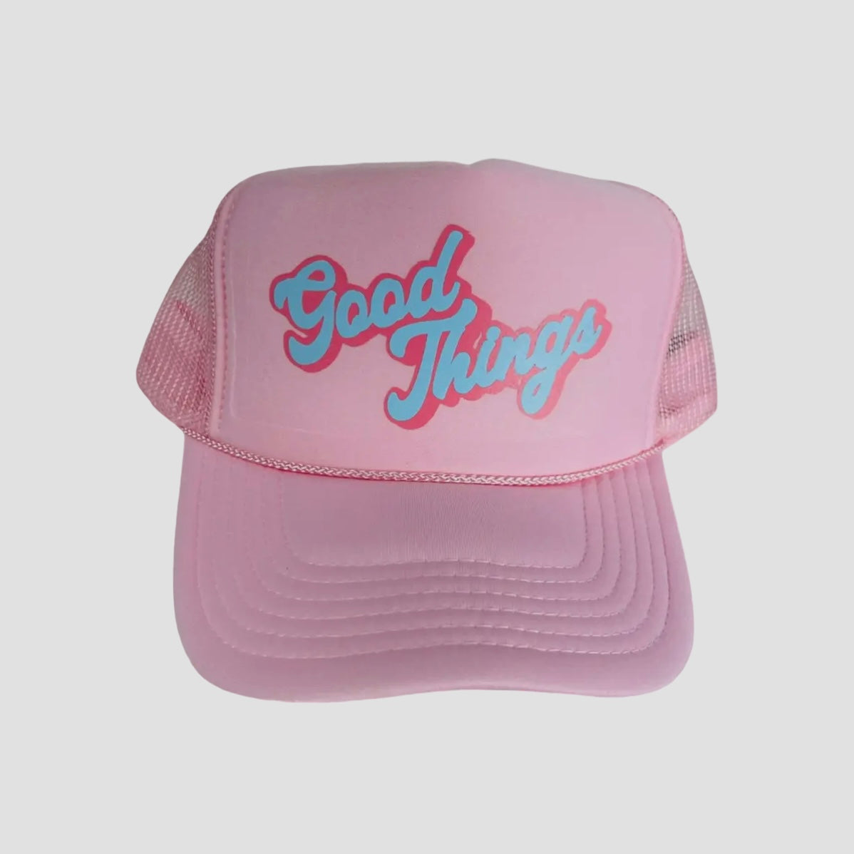Super cute 'Good Things' - light pink trucker hat! This trucker hat is a unisex fit.