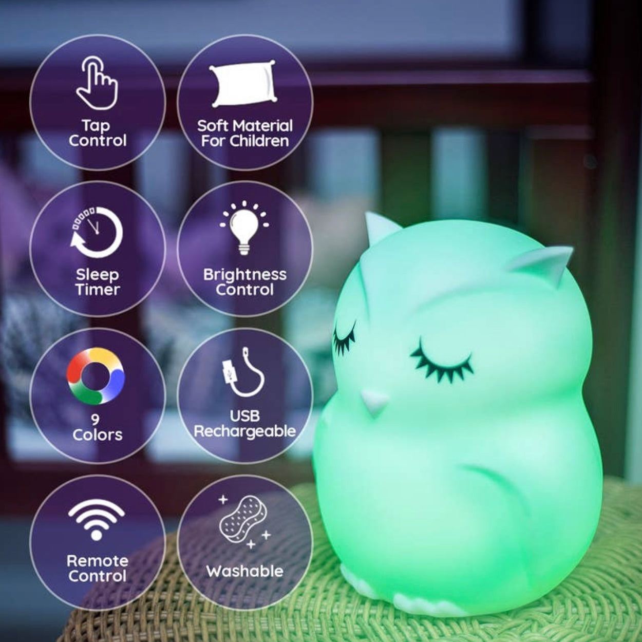 NEW Lumipet® Night Light Companion! Allows for easy diaper changes or bathroom breaks in the dark guarding little ones from the dark. Features: • USB rechargeable Eco- Friendly battery • 9 vibrant LED light color choices with brightness control • 2 Soothing slow fade option • 3 sleep timer settings • Auto- shut off• Machine washable soft silicon • BPA Free safe for children • Perfect kids night light, nursery night light. Product size 6" × 5"× 5". Includes Lumipet®, remote, and USB cord.