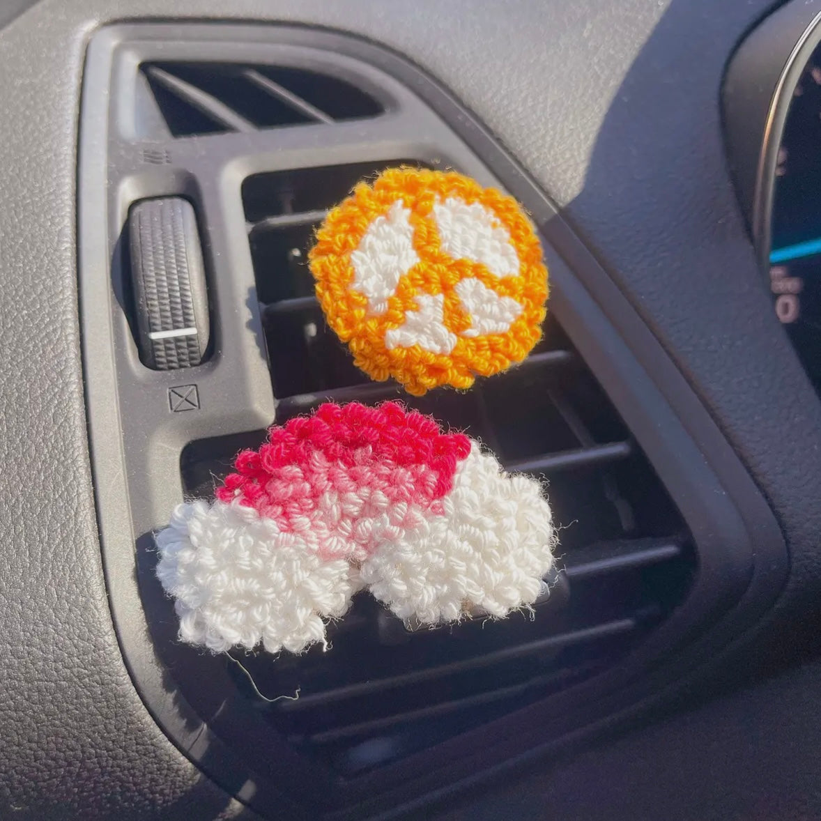 Say goodbye to boring car accessories with these handmade punch needle car air vent clips! These cute, bright and colorful clips are sure to add a touch of personality to your ride--perfect for anyone who loves making a statement in style.