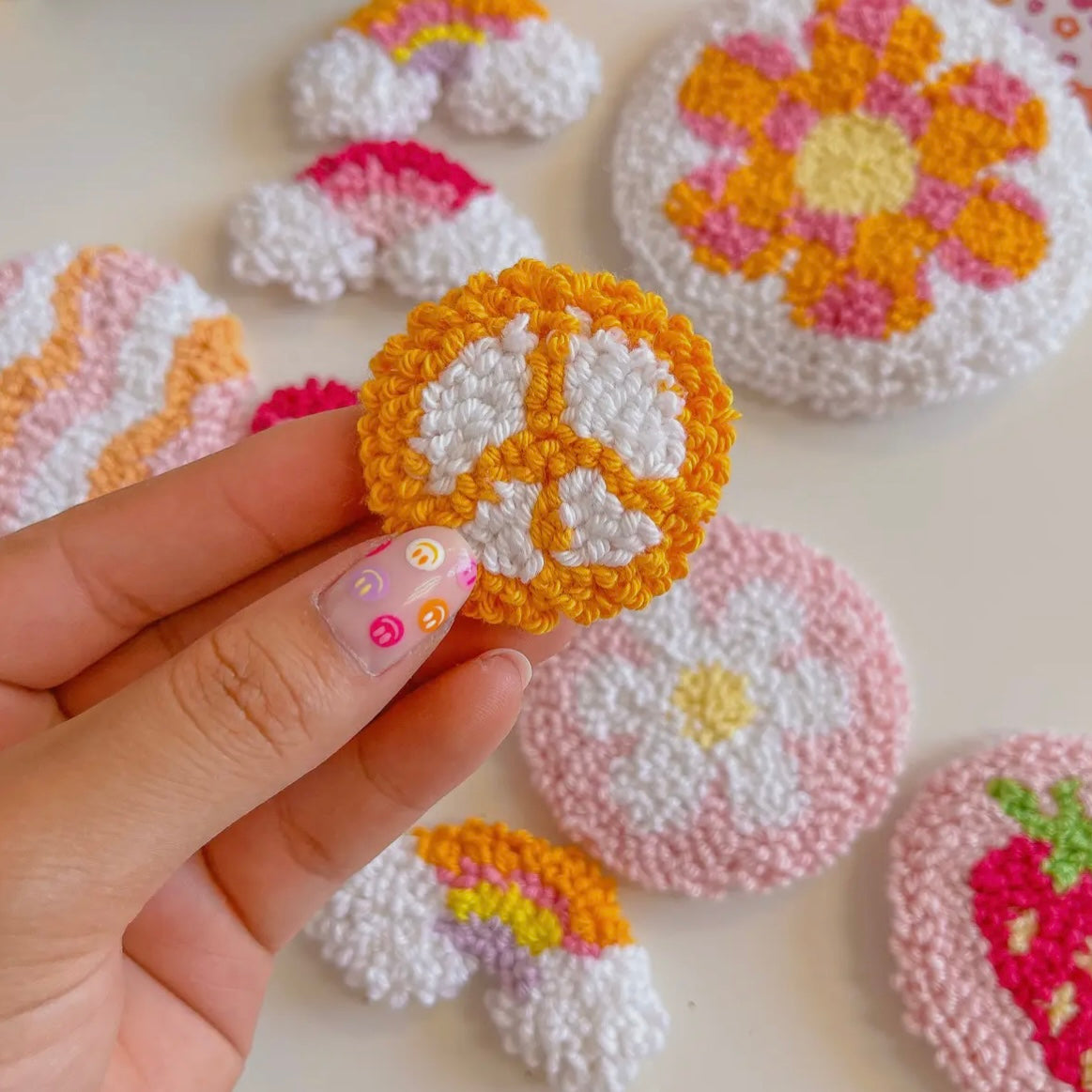 Each punch needle charm measures around 1.5-1.8 inches wide.