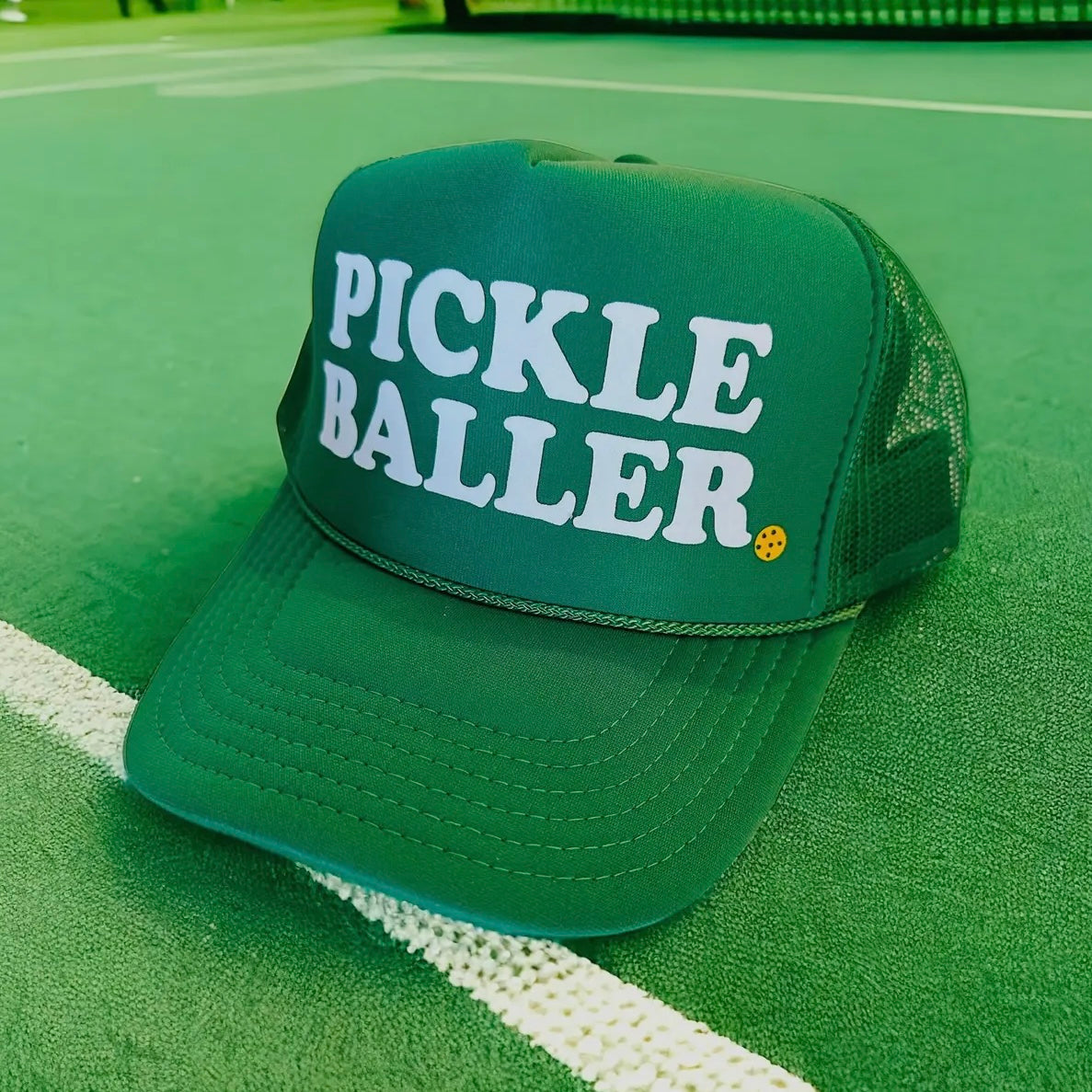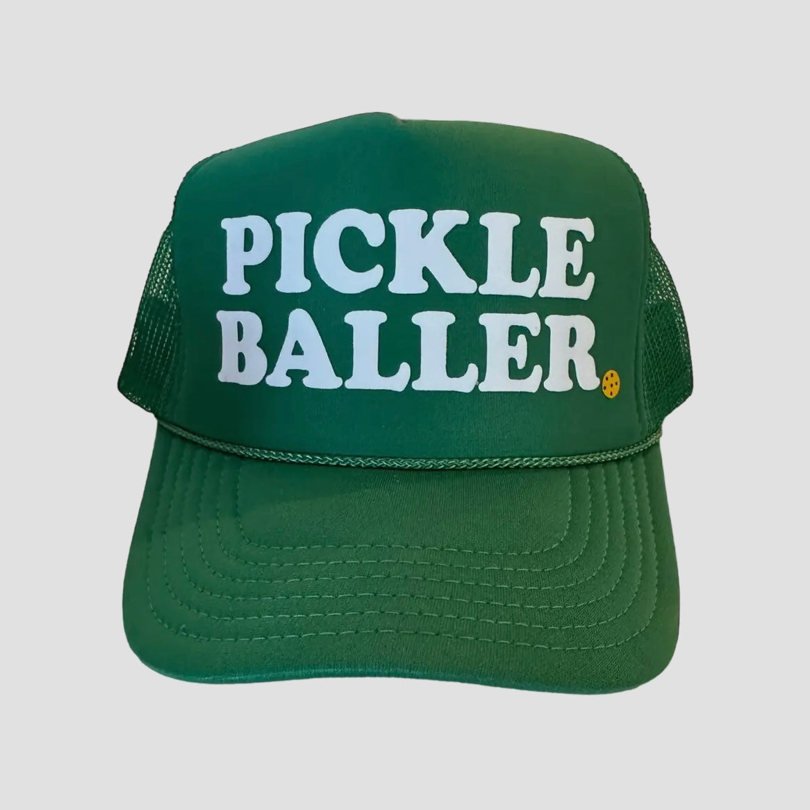 Super cute 'PICKLEBALLER' on Kelly green trucker hat!