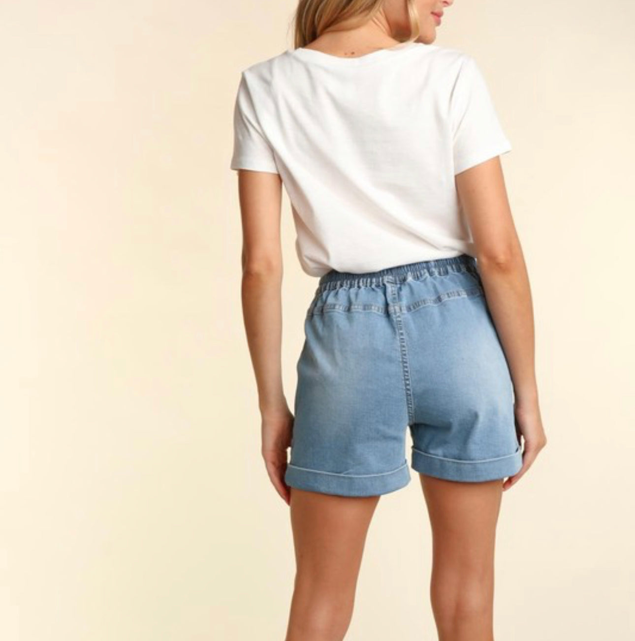 Plus Size Denim Shorts with Drawstring Waist with Pockets